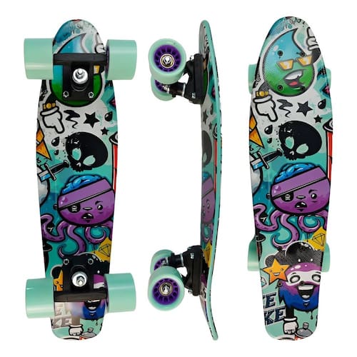 Skate Mini Cruiser Estampa Both SidesLeve, Compacto e Perfeito para Qualquer Rolê.O Skate Mini Cruiser é ideal para quem busca um skate completo, prático e divertido. Com um design compacto e leve, ele é fácil de transportar, cabendo perfeitamente em mochilas e bagagens.Feito de resina termoplástica de alta resistência, oferece durabilidade e estabilidade tanto para iniciantes quanto para skatistas experientes que querem um rolê descontraído.Além disso, conta com desenhos nos dois lados e uma superfície granulada na parte superior, proporcionando maior aderência e evitando escorregamentos durante o uso.Seja para ir à escola, viajar ou apenas se aventurar, o Skate Mini Cruiser é a escolha certa para quem quer mobilidade e estilo.Especificações:Comprimento: 56,5 cmLargura: 14,5 cmShape: Resina Termoplástica Polypropylene (PP)Rolamentos: ABEC-7Rodas: Diâmetro 55 mmPeso recomendado: Até 50 kg Marca: Não Informado