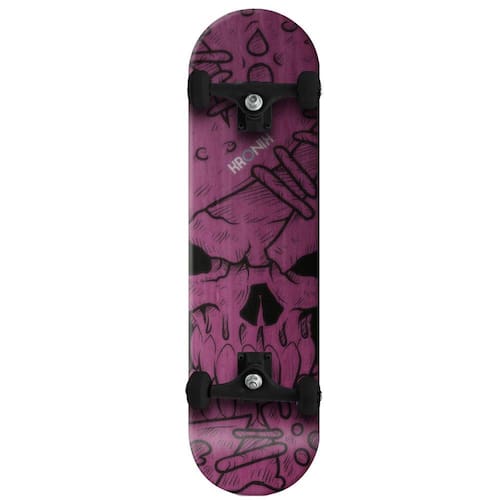 A diversão está garantida com o Skate Pro Kronik Pink Skull , com ele suas manobras terão muito mais estilo com um produto de qualidade Possui Truck em liga de alumínio e shape com 7 lâminas selecionadas com concave diferenciado