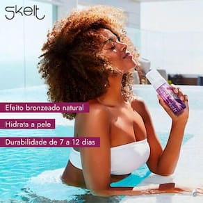 Água autobronzeadora corporal para todos os tipos de pele. Skelt Red Carpet Glow Água Autobronzeadora revela um bronzeado natural enquanto hidrata a pele. Possui 8 horas de ação que bronzeia com intensidade de média a forte e durabilidade de 7 a 12 dias.