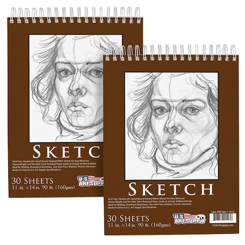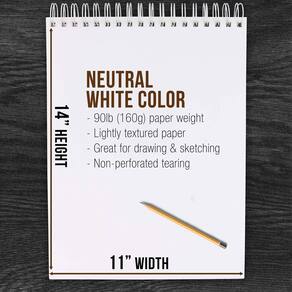 Folhas brancas naturais sem ácido, pH neutro, encadernadas em espiral para facilitar a remoção, papel semitexturizado pesado e versátil, feito para aceitar todos os meios mistos, ideal para escrever, desenhar e esboçar. Use com canetas, marcadores, lápis e mais Peso: 1,2 kg - Pacote com 2 blocos de esboço profissionais de 28 x 35,5 cm. 30 folhas em cada bloco, um total de 60 folhas de bloco de esboço de qualidade de artista premium que estão prontas para você liberar sua criatividade artística! - Blocos de esboço de alta qualidade com folhas de papel branco natural semitexturizadas pesadas, 40,8 kg, 160 g/m². Estas folhas de papel de esboço de pH neutro mais espessas, versáteis, duráveis, livres de ácido, são adequadas para todos os tipos de mídia mista e todos os níveis de habilidade dos artistas. - Cadernos de esboços resistentes em espiral para facilitar a virada de página. As almofadas têm um suporte de aglomerado pesado e capa de papelão para proteção extra. Excelente para crianças e adultos criarem obras de arte ou desenvolverem e praticarem suas habilidades. - As folhas de bloco de esboço são resistentes a vazamentos, manchas e desbotamento e são ideais para escrever, desenhar e esboçar. Ótimo para usar com lápis de cor, lápis de grafite, canetas, marcadores, carvão, pastel macio, bastões de esboço, etc. - Perfeito para uso por aspirantes a artistas, estudantes de arte e artistas profissionais! Estes cadernos de desenho premium são um presente perfeito para quem gosta de esboçar, desenhar e criar arte.