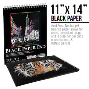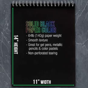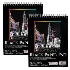 U.S. Art Supply Bloco de esboço de papel pesado preto premium de 28 x 35,5 cm, pacote com 2, 30 folhas cada, 29 kg (140 gsm) - papel de desenho de artista encadernado em espiral - lápis de cor, canetas de gel, pastéis a óleo, tinta carvão - Pacote com 2 blocos de esboço de papel pesado preto premium de 28 x 35,5 cm. 30 folhas em cada bloco, 60 folhas no total. Esboço preto de qualidade artística e folhas de desenho prontas para fazer sua obra de arte se destacar! - Blocos de esboço de alta qualidade com folhas de papel preto pesadas, 29 kg, 140 g/m², textura lisa. Estas folhas de papel de esboço de pH neutro versáteis, duráveis, livres de ácido são adequadas para a maioria dos tipos de mídia seca e todos os níveis de habilidade dos artistas. - Os blocos de esboço são ideais para escrever, desenhar e esboçar. Crie efeitos legais usando canetas de gel, canetas marcadoras metálicas, lápis de cor, lápis de grafite, pastéis de óleo, canetas opacas, carvão, marcadores de giz, tinta, etc. - O uso de papel de arte preto permite que você veja o contraste imediato com a mídia branca e colorida, pois as cores parecerão brilhantes e vivas. Cadernos de esboços resistentes em espiral para facilitar a virada de página. As almofadas têm um suporte de aglomerado pesado e capa de papelão para proteção extra. - Perfeito para uso por aspirantes a artistas, estudantes de arte e artistas profissionais! Estes blocos de papel pretos premium são um presente ideal para quem gosta de esboçar, desenhar e criar arte.