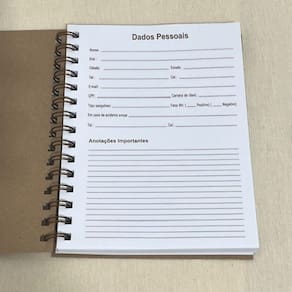 ? Contém dados pessoais com espaço para anotações e elástico para fechamento