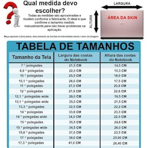 Atenção: realize a medição da parte traseira da tela de seu notebook antes da compra.