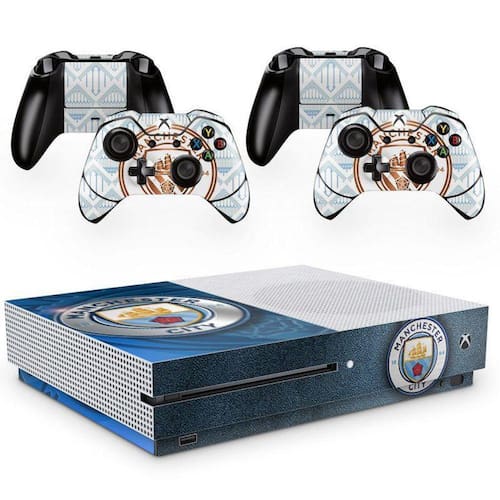 Skin Adesivo Protetor para X Box One S e Controles Manchester City B1 Adesivo feito com material de alta qualidade, protege contra sujeira e riscos, seu design é fino e leve