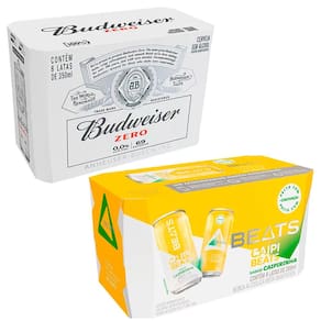 Com esse incrível kit você pode aproveitar dessas incríveis bebidas nos seus momentos de lazer ou mesmo reunir os amigos para uma confraternização! A Skol Beats Caipirinha vai fazer você experimentar um sabor refrescante como limão e surpreendente como Beats. Ela é a bebida perfeita para todas as ocasiões! Já a Budweiser Zero é feita a partir da Bud que você conhece e possui apenas 65kcal, possibilitando que você desfrute do delicioso sabor da Budweiser sem ficar alcoolizado. Adquira agora mesmo esse kit e divirta-se reunindo os seus amigos e familiares!