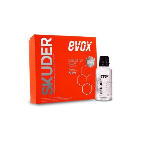Skuder ceramic coating para plastico 50ml - evox Skuder é um coating cerâmico, desenvolvido exclusivamente para o tratamento de superfícies plásticas, a fim de renovar e restaurar plásticos por um período de até 3 anos. Promove resistência e proteção uv. Também pode ser utilizado em plásticos novos, para evitar a degradação do material e prolongar em até três vezes sua vida útil. Skuder pode ser aplicado em para-choques, painéis e laterais de portas. Modo de uso: Lavar bem a superfície plástica. Descontaminar o plástico utilizando revelador de hologramas e uma toalha de microfibra, a fim de remover quaisquer resíduos indesejados ou excesso de outros produtos. Aplicar de maneira uniforme o produto com o aplicador de espuma em toda a superfície. Para menos brilho, remover o excesso com toalha de microfibra limpa e seca. Se necessário, aplicar segunda camada após 3h da primeira aplicação. Informações adicionais: - proteção de até 3 anos - proteção uv Ean: 7898511031339