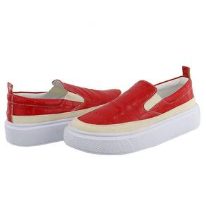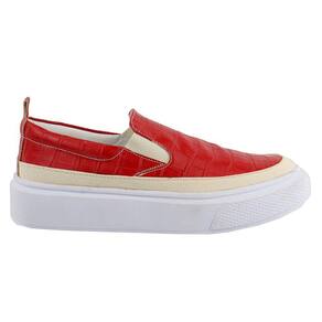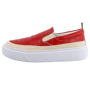 Slip On Tenis Feminino Calce Facil Acabamento Animal Print Croco Palmilha Anatomica Puxador Traseiro - 38 - Vermelho