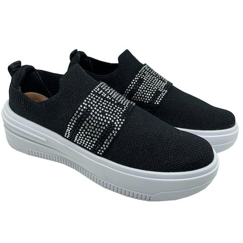Slip On Vizzano Tecido Cristais Feminino - Preto - 39 - Preto