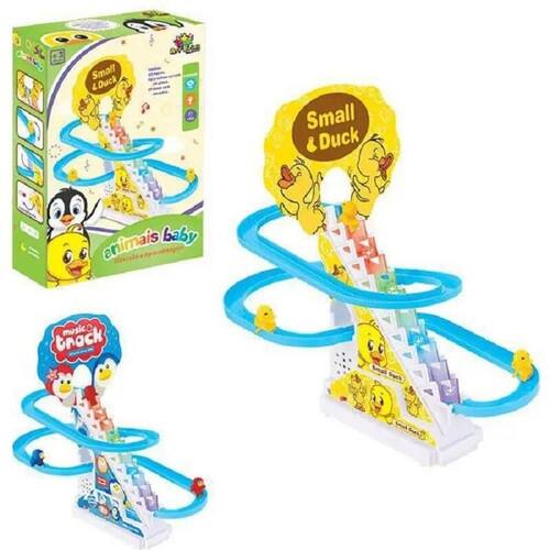 O brinquedo é de material de proteção ambiental, não-tóxico, seguro e saudável. A criançada vai adorar, toca música. O plástico de alta qualidade faz com que os produtos sejam mais duráveis. O pacote inclui: - 03 bichinhos - 03 trechos curvos de pista - 01 base com escadas.