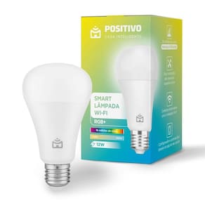 Smart Lâmpada Wi-Fi RGB+ Positivo Casa InteligenteFácil InstalaçãoFaça você mesmo a instalação de forma simples, rápida e fácil.Certificação para HumanosA Smart Lâmpada Wi-Fi RGB+ é participante do programa Certificado para Humanos da Amazon, que permite a configuração simples e sem frustraçõesCores intensas e vibrantescom muito mais potência nas cores brancas e nas coloridas o resultado é mais energia para o seu dia a diaIntegradoUtilize os seus kits de automação, segurança* e câmeras WiFi* no mesmo aplicativo. Crie regras e cenas para deixar sua casa ainda mais inteligente.Especificações TécnicasTensão de entrada 100 ~240 VCA, 50/60HzPotência 12W,>0,5W standbyFluxo luminoso 1000 lmTemperatura de cor 2700k a 6500K + RGBCRI (Color Rendering Index) >80Fator de potência >0.9Conector E27Vida útil >15000hConexão Wi-Fi IEEE 802.11 b/g/n, 2.4GHzSegurança e criptografia WPA/WPA2, WEP/TKIP/AESCertificações Anatel, RoHSDimensões 70 x 70 x 128 mmCor BrancaPeso Líquido 75 g