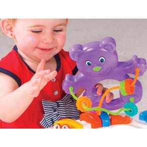 Melodia, engrenagens e peças giratórias, uma abelha deslizante, além de um ursinho removível, a flor reproduz uma melodia quando o botão é acionado, possui também uma esfera giratória! Atividades que despertam a atenção e o didatismo dos pequenos.