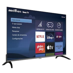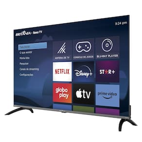 - Smart TV 50” Britânia UHD B50CRA - Tamanho da tela: 50” - Resolução: UHD (3840 x 2160) - Tecnologia do painel: DLED - Taxa de atualização: 60 Hz - HDR10 - Sistema operacional: Roku TV - Áudio: Estéreo Dolby Audio - Potência sonora: 24W RMS (2 x 12W) - Wi-Fi: Dual Band (2.4 GHz e 5 GHz) - Entradas HDMI: 4 - Entradas USB: 2 - Cor: Space GrayVendido e entregue por Pontofrio
