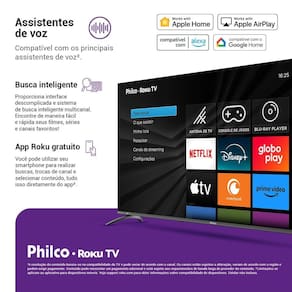 Smart TV 55" 4K UHD com plataforma Roku TV, imagens nítidas, cores vibrantes e acesso facilitado aos principais apps de streaming. Dolby Audio para uma experiência sonora imersiva. Processador Quad Core para desempenho rápido.Vendido e entregue por Philco Oficial