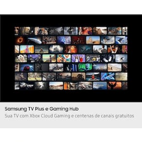 * Samsung TV Plus e Gaming Hub: Acesse milhares de jogos nas plataformas Xbox Cloud Gaming e Nvidia GeForce Now, sem necessidade de downloads ou de consoles. E, com o Samsung TV Plus e apps parceiros*, desfrute de canais de filmes, notícias, infantil, esportes, novelas e músicas, tudo grátis e sem assinatura.