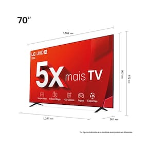 Transforme sua sala em um verdadeiro centro de entretenimento com a Smart TV 70UT8050PSA da LG. Com tela UHD de 70 polegadas e resolução 4K, esta TV oferece imagens com nitidez extrema, contraste elevado e cores vibrantes. Ideal para quem valoriza qualidade, tamanho e inovação em um só equipamento.