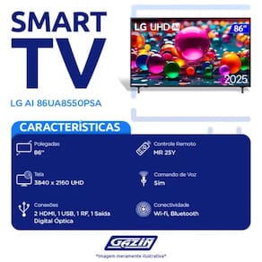 Smart TV LG 86 4K UHD Wi-Fi Comando de Voz 86UA8550PSA