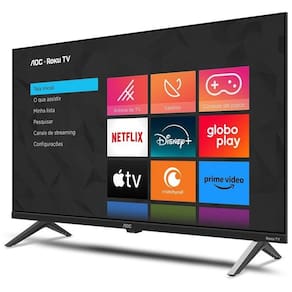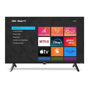 Smart TV AOC Roku TV 40 polegadas Full HD com 3 entradas HDMI, 2 entradas USB e Wi-Fi. Possui tecnologia de painel DLED, resolução máxima de 1920 x 1080, brilho de 240 cd/m3, contraste dinâmico de 200.000:1, ângulo de visão de 178o, frequência nativa de painel de 60Hz, tempo de resposta de 8ms, input lag de 8ms, sistema de som 2.0 com potência de 16W e tecnologia Dolby Audio.Vendido e entregue por TAQI OFICIAL