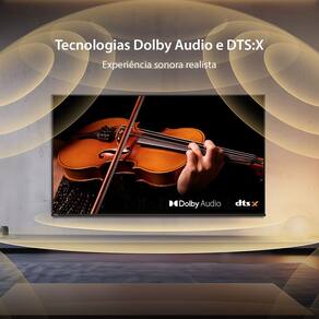 Sinta cada cena com a imersao do Dolby Audio Os dois altofalantes integrados oferecem audio claro potente e com riqueza de detalhes elevando a experiencia sonora do seu entretenimento