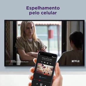 Conta com sistema Smart integrado, com Netflix, Prime Video e YouTube nativos, alem de Wi-Fi Dual Band e Bluetooth para facil conexao com outros dispositivos. O espelhamento para Android e iOS permite compartilhar fotos, videos e conteudos em poucos cliques.
