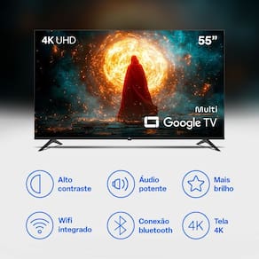 A Smart TV DLED 55 Pol. 4K Multi Android TV foi desenvolvida para quem busca elevar o entretenimento domestico, reunindo qualidade de imagem, conectividade e um sistema rapido e intuitivo. Seu painel 4K UHD oferece imagens nitidas, cores vivas e excelente nivel de contraste, garantindo uma experiencia visual envolvente em filmes, series, esportes e jogos. A tecnologia DLED aprimora a reproducao de brilho e uniformidade, proporcionando cenas muito mais realistas.