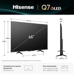 A Smart TV Hisense 65Q7QG de 65" oferece uma experiência envolvente e incrível de entretenimento na sua casa. Equipada com o sistema Google TV, a TV 65Q7QG proporciona uma navegação rápida, intuitiva e fácil acesso aos seus conteúdos favoritos. Com a tecnologia avançada Dolby Vision, HDR, HDR10, HDR10+, HDR10+ Adaptative, HDR+ Gaming, HLG, Dolby Vision IQ, Dolby Gaming, Filmmaker Mode, , desfrute de alta qualidade de imagem e combinado ao Dolby Atmos, desfrute de um áudio imersivo de alta qualidade, ideal para filmes, jogos e esportes. Com Modos dedicados para games e esportes garantem uma visualização aprimorada, enquanto o controle que pode ser acionado por voz facilita seu dia a dia. Além disso, é possível espelhar a tela de dispositivos móveis para a TV através do MiraCast , ampliando as opções de visualização e entretenimento. Compatibilidade Alexa e Google Home, permite integração na sua casa inteligente. Descubra o mundo de possibilidades com a Smart TV Hisense 65Q7QG, combinando design elegante com desempenho excepcional para uma experiência de visualização superior.