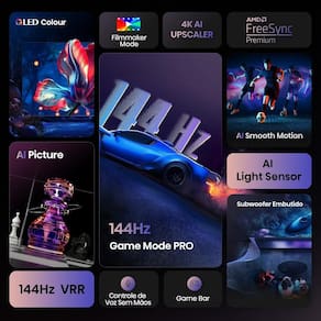 Tecnologia avançada Dolby Vision, HDR, HDR10, HDR10+, HDR10+ Adaptative, HLG, Filmmaker Mode, Dolby Gaming somado ao Dolby Atmos, desfrute de um áudio imersivo e imagem de alta qualidade, ideal para filmes, jogos e esportes.