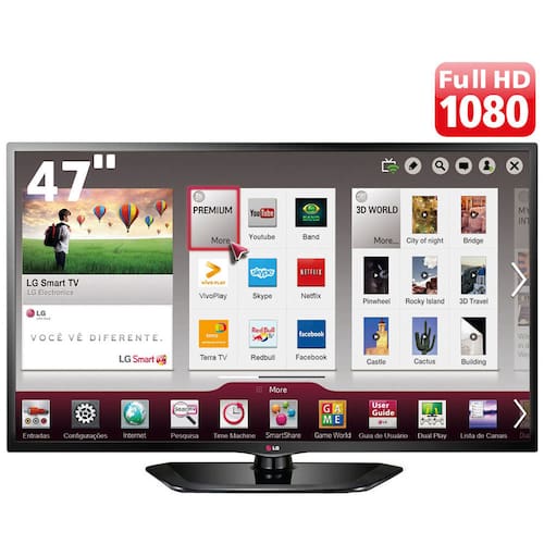 <strong>Smart TV</strong> Acesse seus conteúdos favoritos com muita facilidade. Com usabilidade simples, conectividade avançada e inúmeros conteúdos. Com a LG Smart TV, você tem acesso ao maior oferta de aplicativos em português. <strong>Smart share (2ND Display)</strong> Utilizando a rede Wi-Fi, veja a imagem da sua TV no seu Smartphone/tablet com a tecnologia 2nd Display.* <strong>Locadoras virtuais</strong> Todo o conteúdo Netflix na tela da sua TV. Assista a shows, filmes, desenhos e suas séries favoritas, quando e como quiser. São mais de 30.000 títulos disponíveis. <strong>SKYPE</strong> Com a LG Smart TV, você pode se conectar com amigos e familiares através do Skype* e ficar mais perto de quem você ama. <strong>Músicas</strong> Ouça rádios do mundo inteiro! São mais de 7 mil estações de rádios com mais de 50 gêneros musicais em 120 países. <strong>Smart Sound Mode</strong> Som de qualidade em todas as cenas. Seja um filme, show ou noticiário. Com o Smart Sound a sua TV automaticamente identifica o tipo de conteúdo que está sendo reproduzido e garante a melhor equalização. <strong>Time Machine II</strong> Grave seus programas preferidos para assistir quando puder utilizando um HD externo**. Você consegue programar uma gravação, assistir outro canal enquanto grava ou mesmo retroceder, pausar e reproduzir uma programação que esteja vendo ao vivo. <strong>IPS. O melhor painel, em todos os sentidos</strong> O grande segredo da alta qualidade de imagem das TVs LG é seu impressionante painel. O uso de um painel IPS, garante maior robustez, claridade e ângulo de imagem, assim você assiste a seus filmes com máxima qualidade sempre. <strong>Sempre a melhor imagem</strong> O chip Triple XD Engine entrega o máximo de brilho, cor, contraste e claridade para você. O trabalho pesado fica por conta da TV enquanto você desfruta da melhor qualidade de imagem. <strong>LED Direct</strong> Tenha uma imagem única com o painel LED Direct, que garante cores realmente realistas e tons de preto mais profundos, graças aos LEDs distribuídos por toda tela. <strong>Recursos:</strong> - Ajuste formato de tela : 4:3 / 16:9 / Pelo Programa / Zoom / Zoom 2 / Just Scan / Zoom Cinema - Pré-ajustes de imagem : Vivo / Padrão / Eco / Cinema / Jogos / Expert 1 / Expert 2 - Ajuste temperatura cor: Quente / Médio / Frio - Outros ajustes de imagem: Contraste / Brilho / Cor / Nitidez - Pré-ajustes de áudio: Padrão / Músicas / Cinema / Esportes / Jogos / Pagode / Sertanejo / Funk brasileiro / Configurações do usuário - Ajustes de áudio: Balanço / Otimizador de Som - Relógio : Ligar / Desligar TV / Função Soneca - Closed Caption - Função Mute - Simplink <strong>Diferenciais LG:</strong> - Painel IPS - LG Smart TV**** - DLNA - Smart Mobile Link - WiDi - Função Time Machine II - 2nd Display - MiracastTamanho da tela
