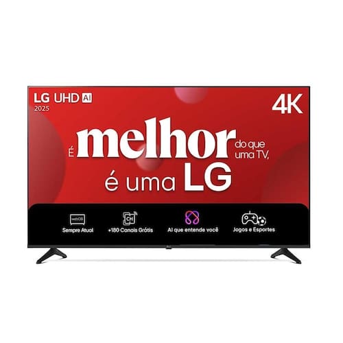 Processador alpha 7 AI de 8ª geração, HDR10 Pro, Som AI Pro, webOS 25, LG Channels, VRR, ALLM, HGIG Mode, Otimizador de Jogos, Google Cast, Apple Airplay, Google Home/Hub, AI Chatbot, Home Hub, LG ThinQ, Web Browser Completo, Compatível com Câmera USB, Compatível com Apple Home, Reconhecimento Inteligente de Voz, Upscaler AI 4K Super Upscaling, Dynamic Tone Mapping, FILMMAKER MODE, Auto Calibração, Clear Voice Pro, AI Acoustic Tuning, LG Sound Sync, Modo Audio Compartilhado, Saída de Áudio Simultâneo, Bluetooth Surround Ready, WOW Orchestra.Tamanho da tela