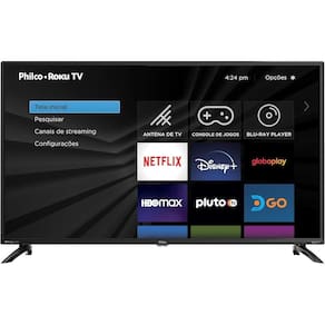 Smart TV Philco 42 polegadas Full HD LED Roku com processador Quad Core, Dolby Audio, Midiacast, APP mobile, pesquisa inteligente multicanal, acesso a Globo Play e YouTube. Conexão com Wi-Fi.Tamanho da tela