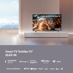 Tecnologia QLED, Resolução 4K, Sistema Operacional Google TV, Som Dolby Audio, Comando de Voz, Espelhamento de Tela, Design Super Slim.Tamanho da tela