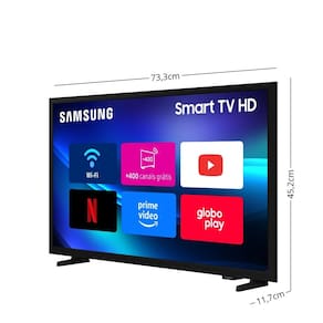 Caracteristicas: Tamanho de tela: 32 polegadas Resolucao: HD -1,366 x 768- Frequencia de painel: 60Hz Processador: Hyper Real Potencia -RMS-: 10W Sistema operacional: Smart TV TizenT Wi-Fi: Wi-Fi4 HDMI: 2 USB: 1 x USB-A Fonte de Alimentacao: AC100-240V 50/60Hz Consumo de Energia -Maximo-: 60 W Desligamento Automatico: Sim Inmetro: 005993/2017