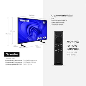 Smart TV Samsung 50" Crystal UHD 4K UN50DU7700 Gaming Hub, Visual livre de cabos, Som em Movimento Virtual, AI Energy Mode, Controle SolarCell, Alexa built in