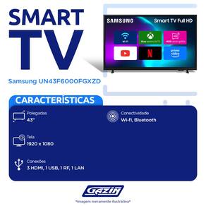 SMART TV SAMSUNG LED 43 FULL HD WI-FI TIZEN UN43F6000FGXZD