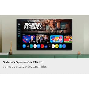 A experiência sonora é igualmente impactante: com som adaptativo e tecnologia de movimento virtual, a TV entrega áudio sincronizado em 2 canais com potência RMS de 20W, proporcionando uma imersão completa. Além disso, ela reúne uma série de recursos inteligentes, como Bixby, Alexa integrada, Samsung TV Plus e Samsung Gaming Hub, além de oferecer suporte para espelhamento de smartphone e AirPlay. Com seu design elegante ? com bordas infinitas e base sofisticada em preto ? esta Smart TV une tecnologia, conectividade e estilo para elevar seu entretenimento ao máximo.