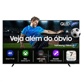 Imagine uma tela que nao apenas exibe imagens, mas encanta os sentidos. TV que entende o que voce quer ver, como voce quer ver e ate com quem quer jogar. A Samsung QLED 65 Vision AI nao e so grande em tamanho. E gigante em tecnologia, inteligencia e estilo.