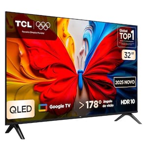 Aproveite cada detalhe com a Smart TV TCL QLED 32". Cores vibrantes com a tecnologia Colorful Quantum Crystal, contraste poderoso da tela HVA e HDR10 para imagens realistas. O design sem bordas valoriza cada cena, enquanto o Dolby Audio garante som imersivo. Com Google Cast, você transmite seus conteúdos favoritos direto do celular.