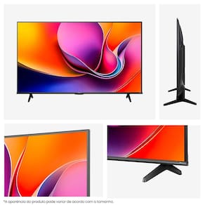 Características Gerais do produto Tecnologia DLED, Resolução UHD 4K, Wi-Fi, Bluetooth, 2 HDMI, 1 HDMI 2.1 (eARC), 2 USB, Sleeptimetroser, 4K AI Upscaler, AI Smetrosooth Motion, Dolby Vision, Sistemetrosa VIDAA, VIDAA Voice, Assistente Virtual Alexa, Gametrose Mode, Apps: Disney+, Deezer, Claro Video, Netflix, YouTube, YouTube Kids, Pluto TV, VIDAA Channels, Primetrose Video, Directv GO, NBA League Pass.