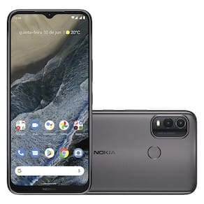 Marca: Nokia Modelo: Smartphone Nokia G11 Plus 4G 128GB 3GB RAM Tela 6,5 HD Câm Dupla 50MP Android 12 Cinza - NK095 Cor: Cinza Tela: 6,5 HD + V-notch 90Hz Processador: Spreadtrumm T606 Octa-Core 1,1GHz Conectividade: 4G, GPS e Bluetooth 5.0 Memória RAM: 3GB Memória Interna: 128GB, sendo 64GB interno + 64GB via cartão SD, expansível com cartão Micro SD até 512GB Câmera Traseira Dupla: 50MP+2MP Câmera Frontal: 8MP Bateria: 5000mAh Sistema Operacional: Android 12 -com atualizações- Desbloqueio: Digital e facial Largura do produto: 7.59cm Altura do produto: 8.55cm Comprimento do produto: 16.48cm Peso do produto: 191.000g Kit Completo: Capa + Película + Fone + Carregador + Cabo Garantia: 1 ano