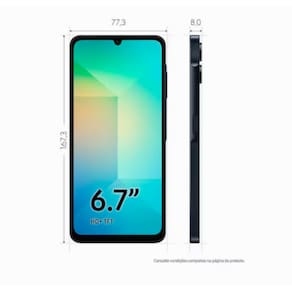 Celular Samsung Galaxy A06 com tela de 6.7", 128GB, 4GB de RAM, Câmera Traseira de 50MP, Câmera Frontal de 8MP, Bateria de 5000mAh, Dual Chip, Android