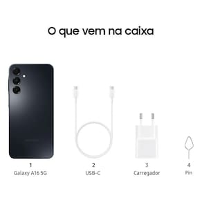 Smartphone Samsung Galaxy A16 256GB - Preto, 4G, RAM 4GB, Tela 6.7", Câmera Tripla 50MP + Selfie 13MP