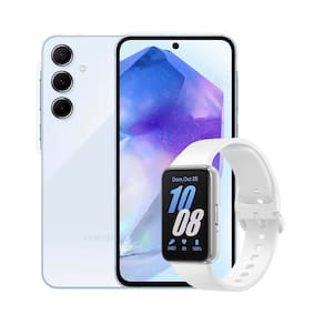 Smartphone Samsung Galaxy A55 5G Azul Claro 256GB, 8GB RAM, Câmera Tripla de até 50MP, Selfie de 32MP e Tela Super AMOLED 6.6" + Galaxy Fit3 Prata