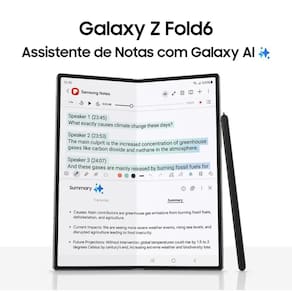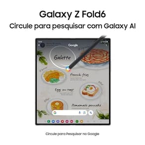 O Galaxy Fold6 ainda conta com diversas outras novidades, junto ao Galaxy AI.Kit Embalagem: (Aparelho celular, carregador, cabo USB, Extrator de Chip e manual do usuário).