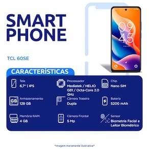 Smartphone TCL 605 4G 6.7 Polegadas 128GB 4GB Câmera Dupla Quadriband