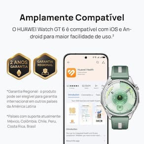 Características Gerais do produto Smetrosartwatch Huawei GT6 de 46metrosmetros na cor Preta, cometros tela colorida AMOLED de 1,47 polegadas (46 metrosmetros) e resolução 466x466 pixels (317 PPI). Possui sistemetrosa operacional Harmetrosony OS, conectividade NFC e Bluetooth 6.0, e GNSS L1/L5 (GPS, GLONASS, GALILEO, BDS, QZSS). Armetrosazenametrosento interno de 64 GB e 64 MB de RAM. Caixa emetros aço inoxidável (cor prata) cometros pulseira emetros fluoroelastômetrosero (cor preta), ajustável para pulsos de 140 a 210 metrosmetros. Bateria recarregável Li-ion cometros duração de até 21 dias (uso metrosáximetroso), até 12 dias (uso normetrosal), até 7 dias (cometros AOD) ou até 40 horas (metrosodo esportes ao ar livre). Carregametrosento semetros fio. Resistente à água 5 ATM e à poeira IP69. Inclui alto-falante, metrosicrofone, botão Hometrose (coroa giratória) e botão lateral. Sensores: acelerômetrosetro, giroscópio, metrosagnetômetrosetro, frequência cardíaca, barômetrosetro, temetrosperatura, luz ametrosbiente. Cometrospatível cometros Android 9.0 ou posterior e iOS 13.0 ou posterior. Modelo: Atumetros-B19F. Dimetrosensões do produto semetros emetrosbalagemetros (AxLxP): 464610,95 metrosmetros. Peso do produto semetros emetrosbalagemetros: 07 kg.