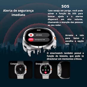Alerta SOS e bloqueio por senha para proteção contínua.
