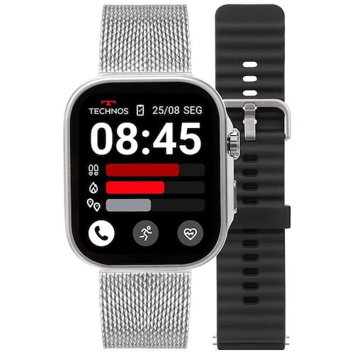 plaintext_description_meli - Relógio Smartwatch Technos Connect Max Call Prata - TMAXCAB/9KO smartwatch Technos Connect Max Call combina design sofisticado e funcionalidades avançadas. Com a máxima conectividade de Ligação por Bluetooth, você consegue fazer e receber chamadas de onde e como estiver, diretamente pelo smartwatch. Atenda o seu celular com apenas um toque, para mais praticidade no dia a dia; registre seus principais contatos do celular para fazer ligações de forma simples e rápida. Se não tiver o contato salvo, é só acessar o teclado para digitar o número desejado. TELA AMOLED DE ALTA RESOLUÇÃOSua sofisticada tela AMOLED de alta resolução possui 1.99 polegadas, brilho de 600 nits e resolução de 410x494 pixels, proporcionando cores mais vibrantes, maior qualidade das imagens, tempo de resposta mais rápido e menor consumo de energia. Sua tela é complementada pelo Panda Glass, um vidro altamente resistente a impactos e arranhões, que proporciona uma excelente qualidade da imagem, enquanto mantém a transparência e clareza da tela.Sua caixa robusta de alumínio de 48mm apresenta protetor de coroa, além de apresentar botão de acionamento e abertura de microfone para ligações. MODELO TROCA-PULSEIRAO Connect Max Call é um modelo troca-pulseira, garantindo sua versatilidade. Ele vem com uma elegante pulseira de aço inoxidável em mesh, para entregar ainda mais sofisticação. Sua pulseira extra é de silicone na cor preta; trabalhada em relevos, ela é macia, resistente e confortável, ideal para ser usada durante a prática de esportes ou em momentos mais casuais. - Caixa de alumínio - Pulseira de aço inoxidável em mesh- Pulseira extra de silicone na cor preta- Tamanho de caixa 48mm- Tela AMOLED de 1.99?- Resolução de 410x494 pixels- Resistência à água de 50 metros MAIS DE 100 MOSTRADORESCom mais de 100 mostradores disponíveis na galeria do aplicativo, o smartwatch ainda permite a personalização do mostrador com qualquer foto do celular, além de opções de layout para a posição do horário. Com a funcionalidade de Tela Ativa acionada, o mostrador do Connect Max Call fica sempre aceso com uma tela de descanso. TECNOLOGIA ESPORTIVA E FUNCIONALIDADES DE BEM-ESTARAlém de controlar a prática de 100 modalidades esportivas; ele apresenta reconhecimento automáticode 4 exercícios; monitoramento de batimentos cardíacos; monitoramento de desconforto; exercícios de respiração; monitoramento do sono; e alerta sedentarismo. FUNCIONALIDADES DE ROTINACom resistência à água de até 50 metros, o Connect Max Call apresenta uma bateria de longa duração, que permite até 10 dias de uso sem precisar recarregar, dependendo do uso; notificações de chamadas, mensagens e redes sociais; controle de música do celular; controle de câmera do celular e informações de clima. APLICATIVO EXCLUSIVOTodos os dados e funcionalidades podem ser acessados e programados através do nosso aplicativo exclusivo Technos Connect, com segurança de dados estabelecidos pela LGPD (Lei Geral de Proteção de Dados) e totalmente em português. Com ele, além de acessar as informações do relógio, você tem acesso a dúvidas frequentes, vídeos-tutoriais e assistência técnica humanizada especializada em smartwatches. Além disso, o Connect Max Call possui integração com o aplicativo Strava, o maior aplicativo de corrida no mundo. GARANTIA NACIONAL DE 1 ANO