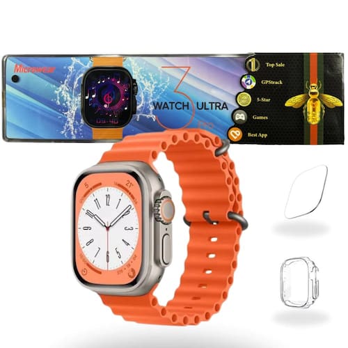 O smartwatch Watch Ultra 3 PRO é um dispositivo de alta tecnologia que combina elegância, funcionalidade e durabilidade. Projetado para atender às necessidades dos entusiastas de atividades físicas, aventureiros e profissionais, ele apresenta uma tela AMOLED de alta resolução, oferecendo uma visualização nítida e vibrante em qualquer condição de iluminação. O dispositivo também integra assistente de voz, notificações inteligentes e uma bateria de longa duração que garante até 10 dias de uso com uma única carga. ( 450Mha ) Com um design moderno e diversas opções de pulseiras intercambiáveis, o Watch Ultra 3 PRO é a escolha perfeita para quem busca um smartwatch que se adapta tanto ao estilo de vida ativo quanto às demandas do dia a dia. FUNÇÕES: Novo Sistema Micro OS 10 (alta performance) - Ilha Dinâmica (mostra funções na ilha) - Galeria de Fotos • Menu Colmeia - Faz e recebe ligações - Recebe notificação de aplicativos de redes sociais e APPs - Bloqueio por senha - Bússola - Funções esportes - Controle menstrual - Informações push: notificação de mensagens recebidas síncrona do centro de notificação em seu telefone -Chamadas: fazer & atender chamadas depois de conectar bluetooth com telefone inteligente -Tecnologia: always play - onde você tem uma tela acessa o tempo todo de sua preferência -Comando de voz compatíveis: Alexa, Siri e Google - NFC (destravamento de portas) - Assistente de voz - Monitor de sono - Trava para Trocar Pulseira -Treinamento de respiração - Música de bluetooth - Treino - Cronômetro relógio de pulso - Despertador relógio despertador - Temporizador - Câmera Encontre o telefone -Calculadora -Telefone: Discagem, atende ligações, é possível falar diretamente no relógio, Lista telefônica, recebe SMS • Player de Música: pode controlar suas músicas -Funções Esportes: Caminhada, Corrida, Alpinismo, Ciclismo, Basquete, Badminton, Futebol, Ioga, Tênis de Mesa, Pular Corda, Tênis e Levantamento de Peso - Vários games – pode baixar - Controle de músicas e pode ouvir músicas do seu celular no relógio + fone de ouvido – Reprodução de música local (fone de ouvido Bluetooth pode ser conectado para reproduzir), movimento GPS, download de jogos, vídeo de trilha de movimento APP, compartilhamento familiar saudável, informações de saúde de posicionamento, alarme SOS, álbum, envio de discagem personalizada de vídeo e muito mais.