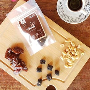 Ingredientes: Tâmara, Banana passa, Amendoim, Alfarroba em pó.