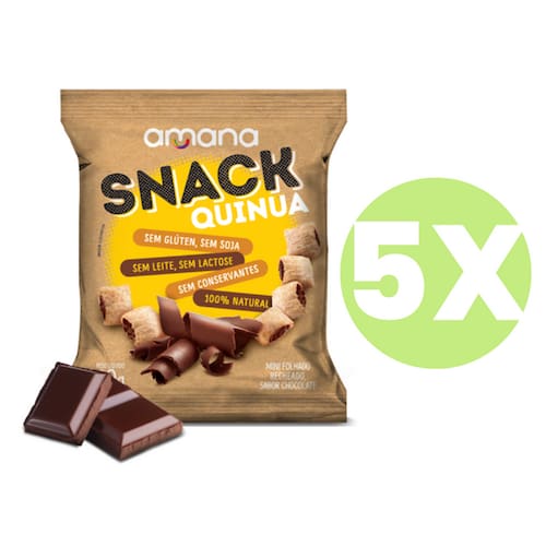 Mix de farinhas (quinua, aveia, arroz e milho), recheio de chocolate (açúcar demerara, gordura de palma, farinha de arroz, cacau emm pó, lecitina de girassol e vanilia).