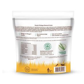 Os snacks de banana e aveia glúten free com probióticos da petvegan são assados, ricos em ômega 3 e ômega 6, não contém farinha de trigo, nem sal ou açúcar, sem corantes ou conservantes artificiais.